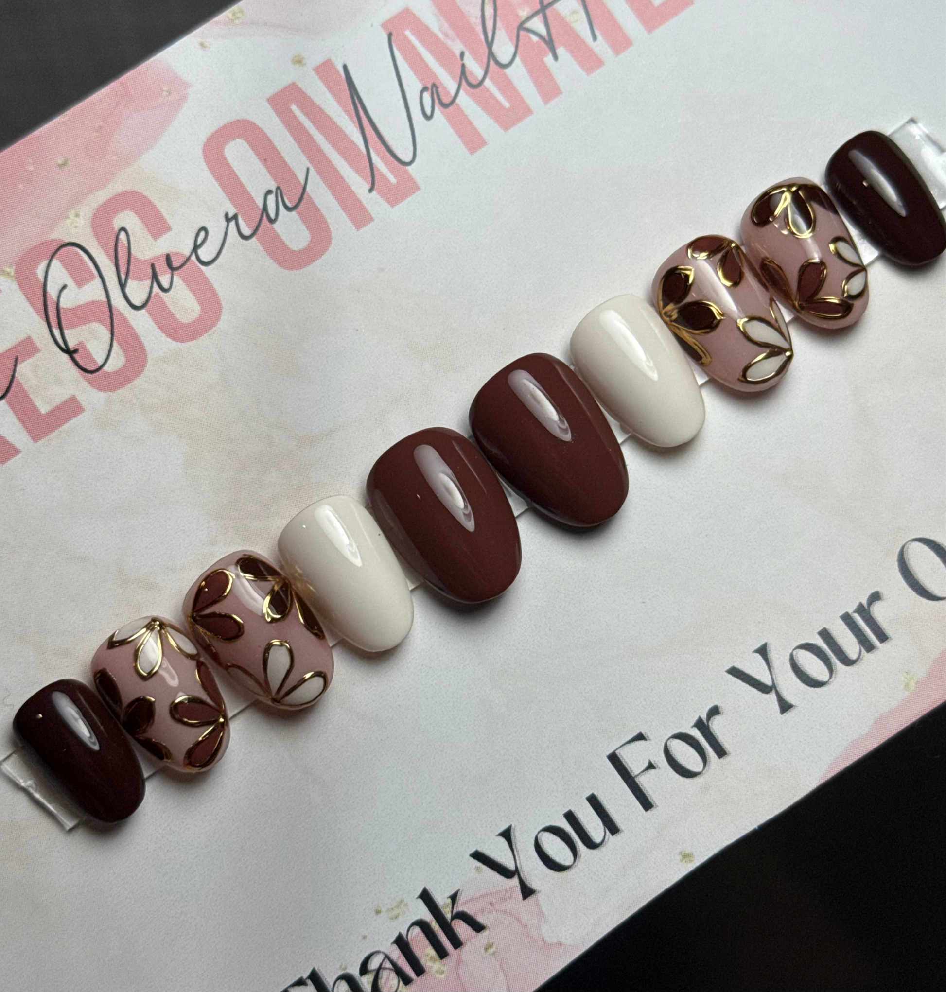This set is inspired by the cozy hues of autumn rich browns, golden tones, and that crisp fall vibe we all love. It's the perfect match for your sweaters, coffee runs, and everything pumpkin spice.